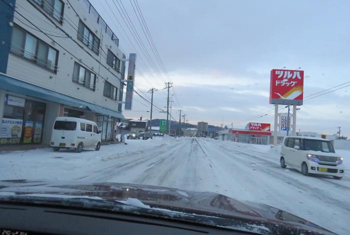 午前6時50分、西3号線とん田通りの北見中央病院横から無加川橋方向