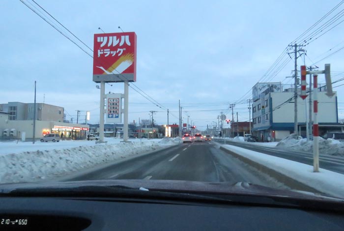 末広町の南岸通り、西4号線バス停前から野付牛自動車学校方向