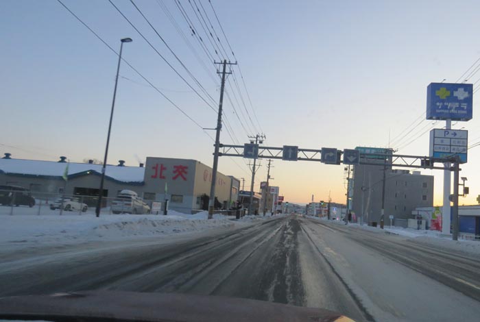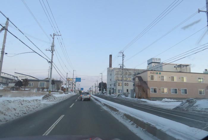 末広町の南岸通り、西4号線バス停前から野付牛自動車学校方向
