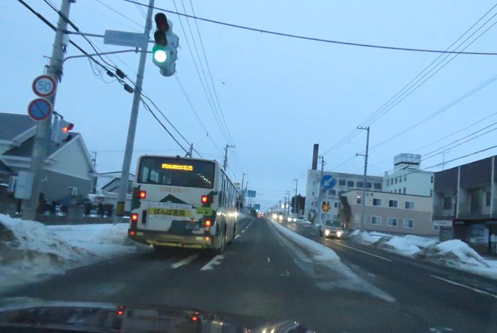 末広町の南岸通り、西4号線バス停前から野付牛自動車学校方向