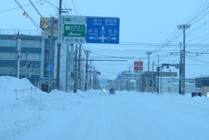 国道39号、北見トヨペット前からとん田通り交差点方向