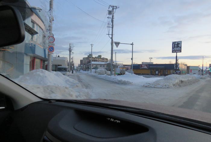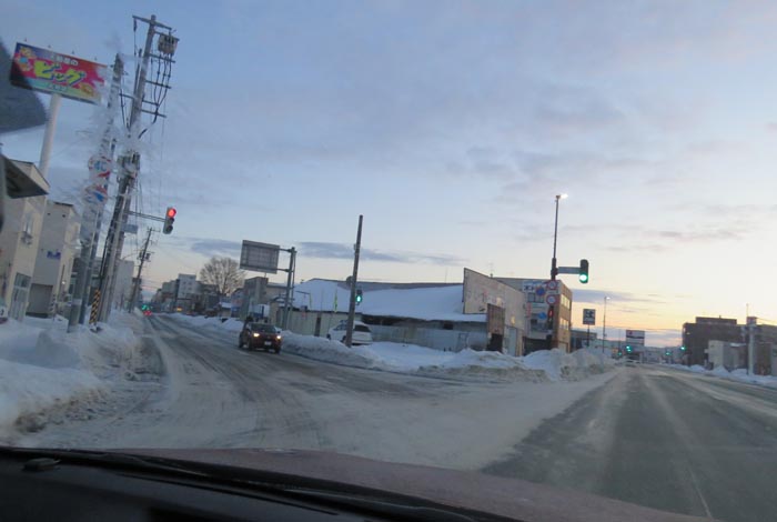 末広町の南岸通り、西4号線バス停前から野付牛自動車学校方向