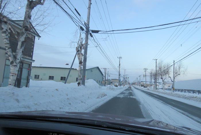 午前6時50分、南岸通り、野付牛自動車学校前から無加川町方向