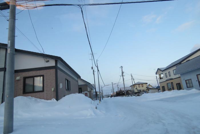 産岸通りから左折して西5号線のバス停前から北光通り交差点方向