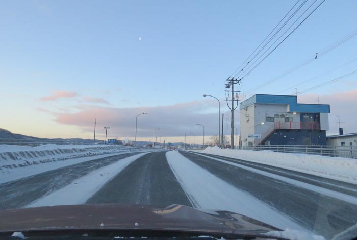 午前6時50分、西3号線とん田通りの北見中央病院横から無加川橋方向