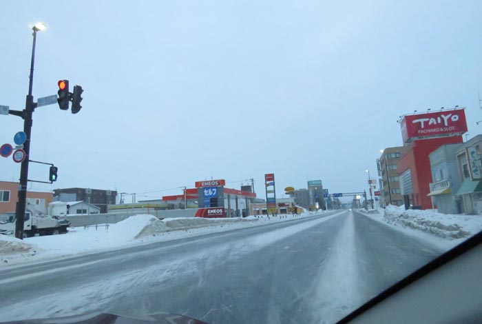 午前6時40分、北4条通りの国道39号交差点を右折で緑園通り方向