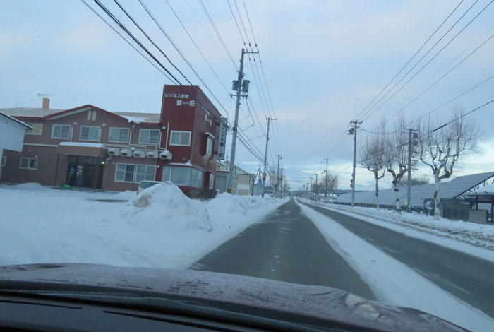 午前6時50分、南岸通り、野付牛自動車学校前から無加川町方向