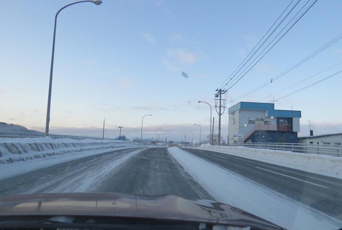午前6時50分、西3号線とん田通りの北見中央病院横から無加川橋方向
