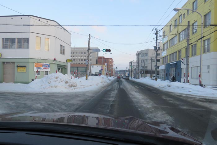 午後4時30分、西4丁目通りをオホーツクビール側から国道39号方向へ