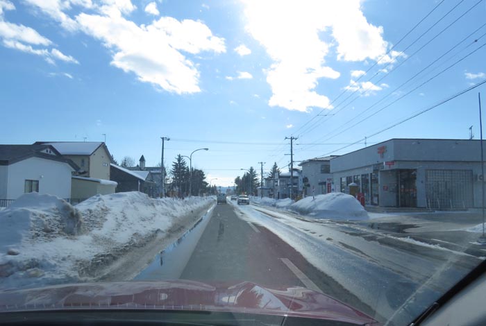 午前11時50分、夕陽ケ丘通りから左折で西7号線へ