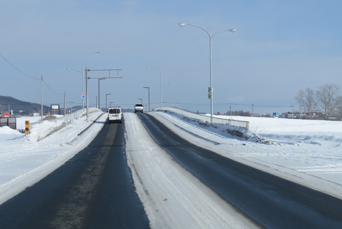 午前10時30分、京セラ北見工場の正門前から国道39号方向