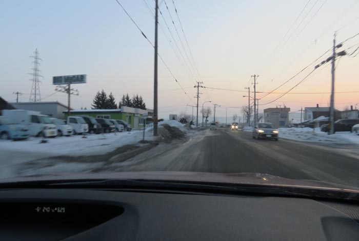 午前6時20分、西5号線、前方は南岸通りの交差点