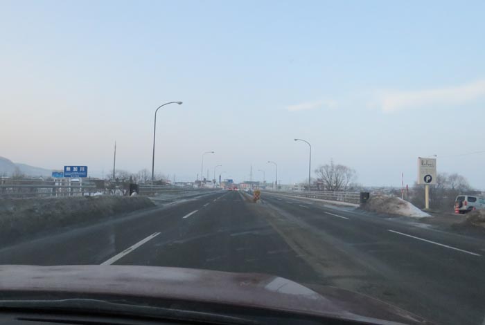 午前6時30分、西3号線とん田通りの北見中央病院横から無加川橋方向