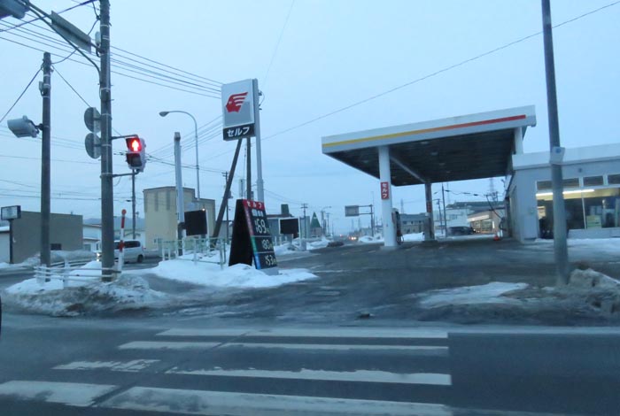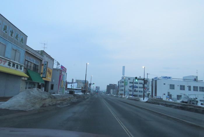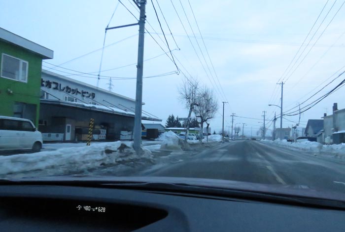 末広町の南岸通り、西4号線バス停前から野付牛自動車学校方向