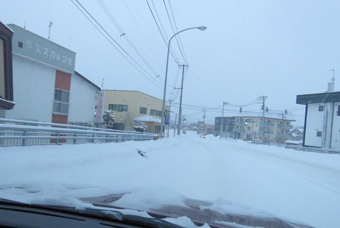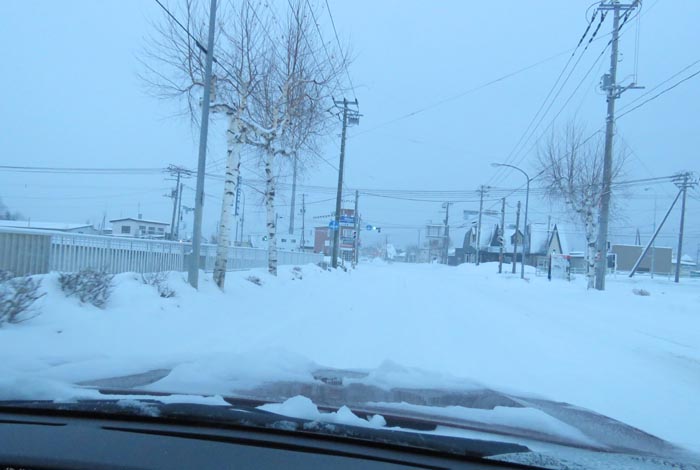 末広町の南岸通り、西4号線バス停前から野付牛自動車学校方向