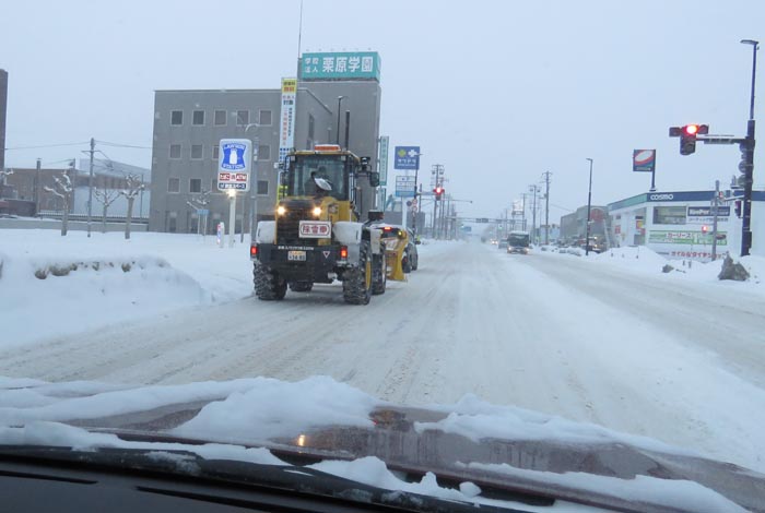 午前6時40分、4条通りの国道39号交差点を右折で緑園通り方向