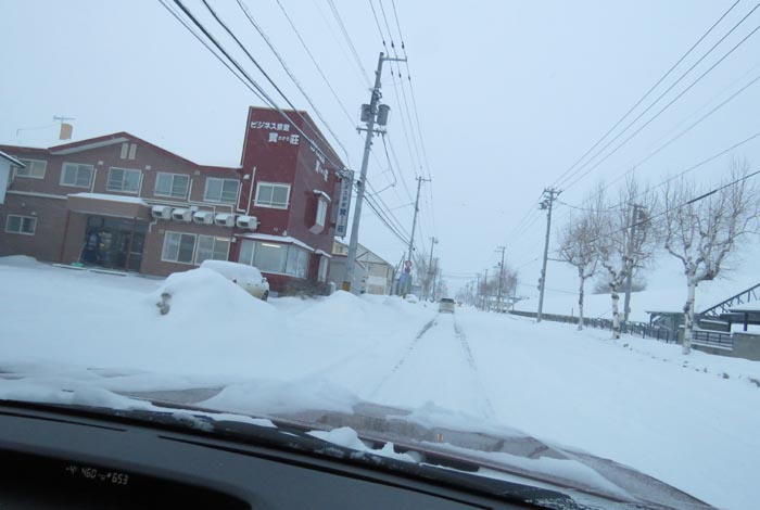午前6時50分、南岸通り、野付牛自動車学校前から無加川町方向
