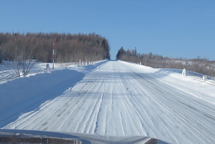 午前7時50分、置戸町雄勝の道路を国道242号方向