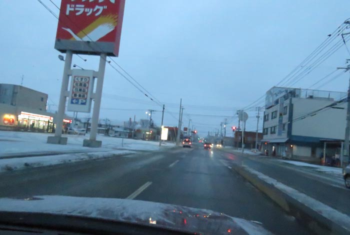 末広町の南岸通り、西4号線バス停前から野付牛自動車学校方向