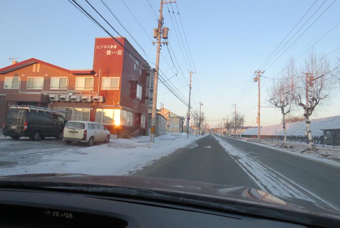午前6時20分、南岸通り、野付牛自動車学校前から無加川町方向