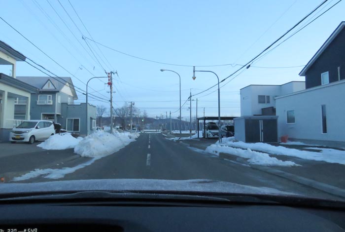 末広町の南岸通り、西4号線バス停前から野付牛自動車学校方向
