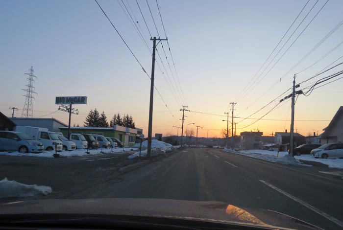 末広町の南岸通り、西4号線バス停前から野付牛自動車学校方向