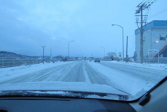 午前5時50分、西3号線とん田通りの北見中央病院横から無加川橋方向