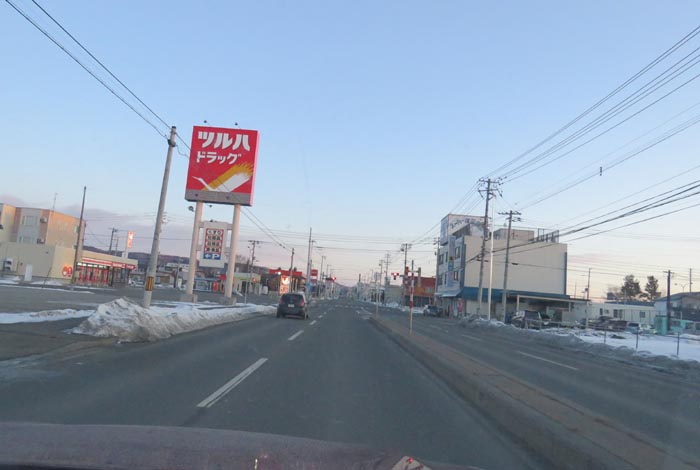 末広町の南岸通り、西4号線バス停前から野付牛自動車学校方向