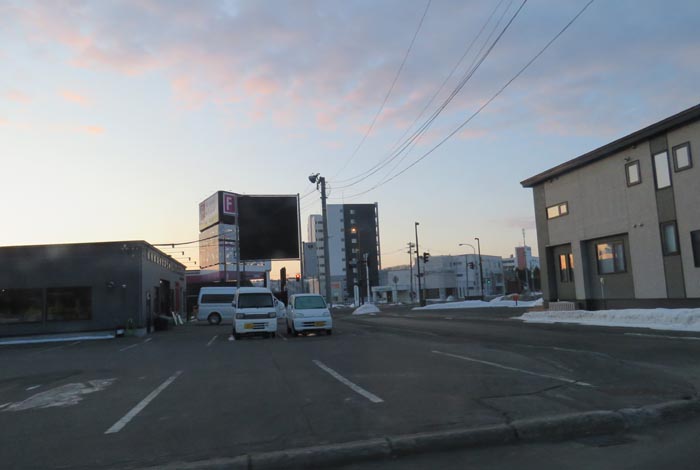 北1条通り、西4丁目通り交差点から右は跨線橋方向