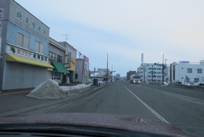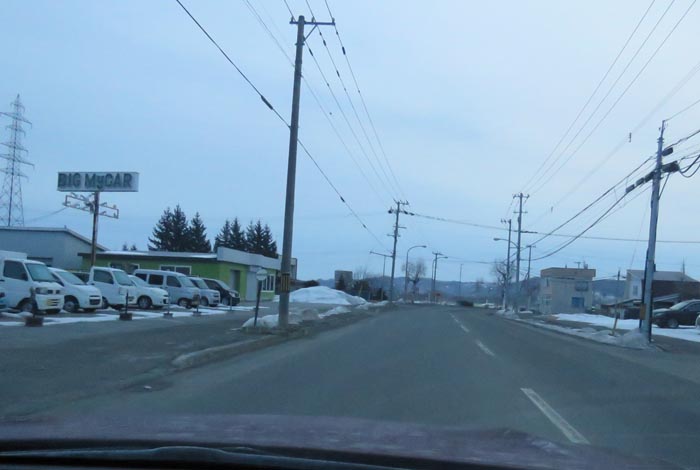 末広町の南岸通り、西4号線バス停前から野付牛自動車学校方向