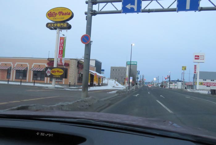 国道39号、北見トヨペット前からとん田通り交差点方向