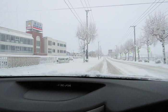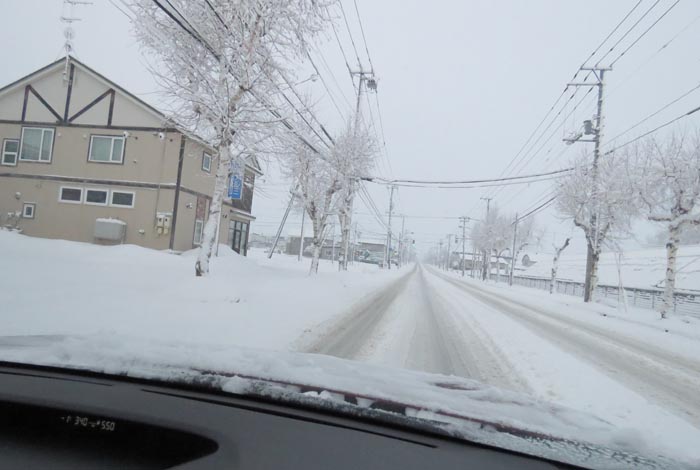 午前5時50分、南岸通り、野付牛自動車学校前から無加川町方向
