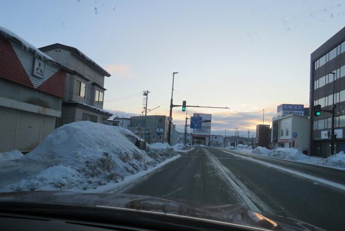 北1条通り、西4丁目通り交差点から右は跨線橋方向