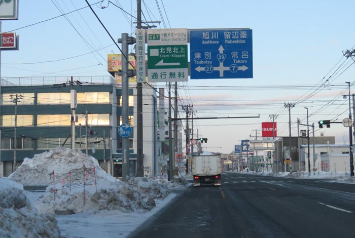 国道39号、北見トヨペット前からとん田通り交差点方向