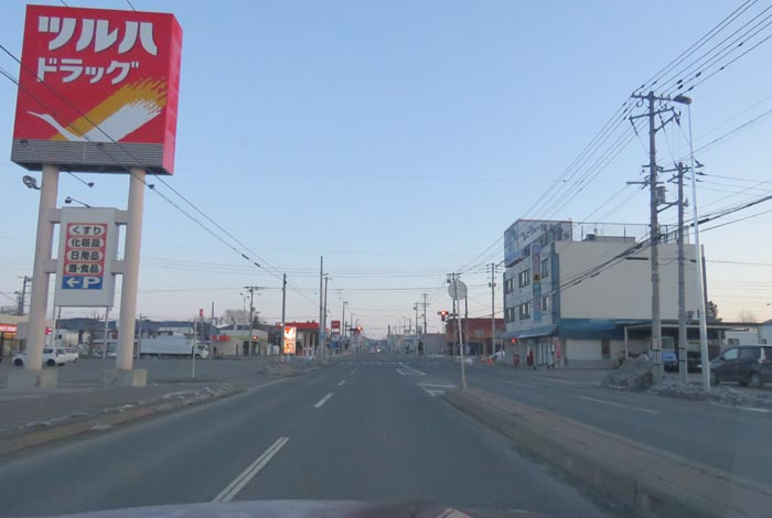 南岸通り、とん田通りの交差点から右は北光神社方向