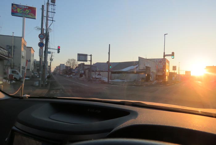 南岸通り、とん田通りの交差点から右は北光神社方向