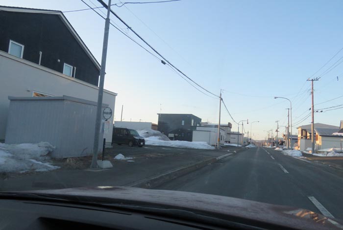 産岸通りから左折して西5号線のバス停前から北光通り交差点方向