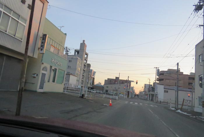 北1条通り、西4丁目通り交差点から右は跨線橋方向