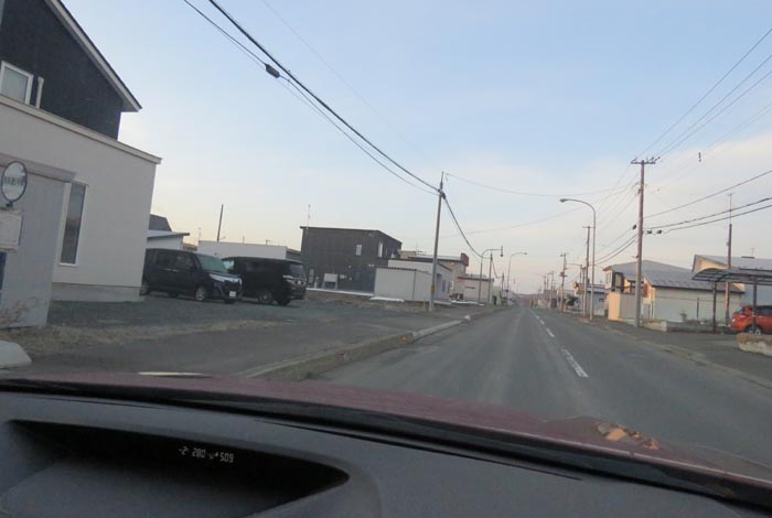 産岸通りから左折して西5号線のバス停前から北光通り交差点方向