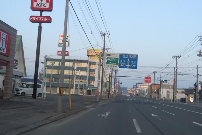 国道39号、北見トヨペット前からとん田通り交差点方向
