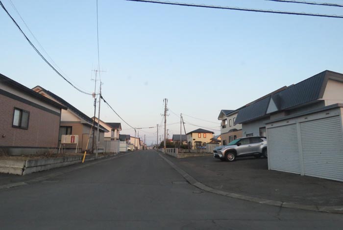 産岸通りから左折して西5号線のバス停前から北光通り交差点方向
