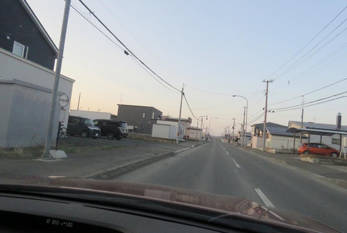 産岸通りから左折して西5号線のバス停前から北光通り交差点方向