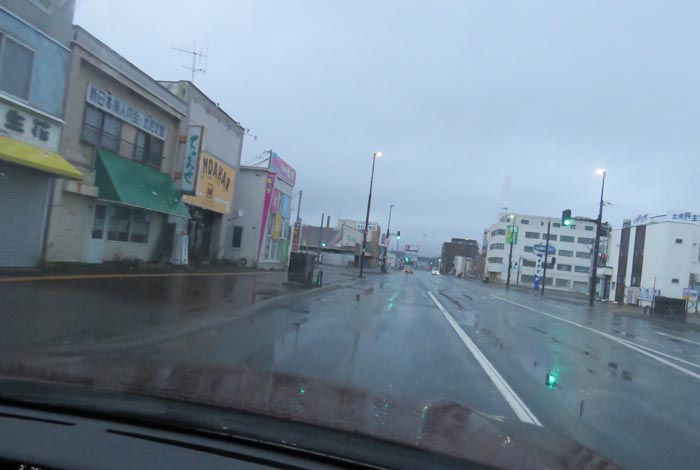 末広町の南岸通り、西4号線バス停前から野付牛自動車学校方向