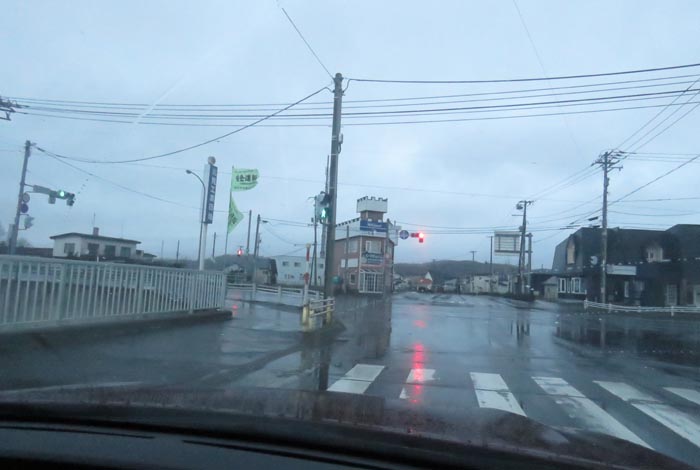南岸通り、野付牛自動車学校前、前方はとん田通りの交差点