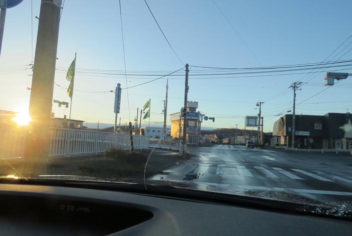 南岸通り、野付牛自動車学校前、前方はとん田通りの交差点