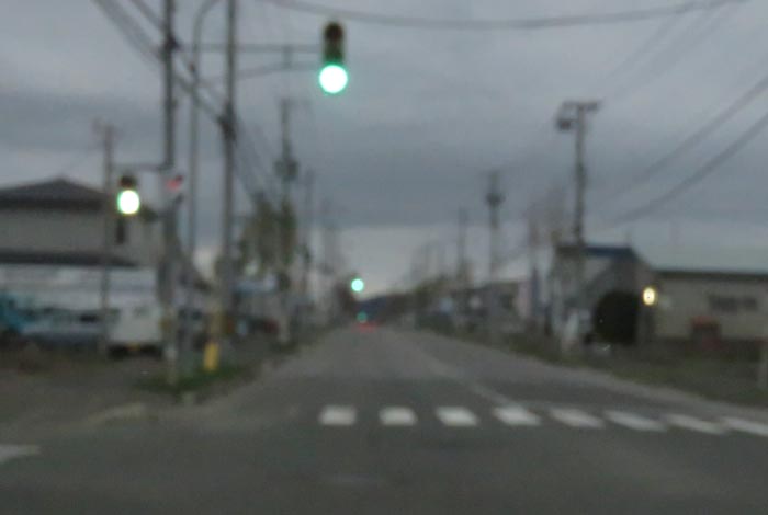 午前4時40分、南岸通り、野付牛自動車学校前から無加川町方向