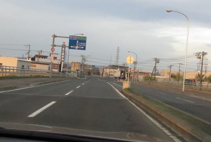 とん田通り、無加川橋を渡り錦町の南岸通り交差点