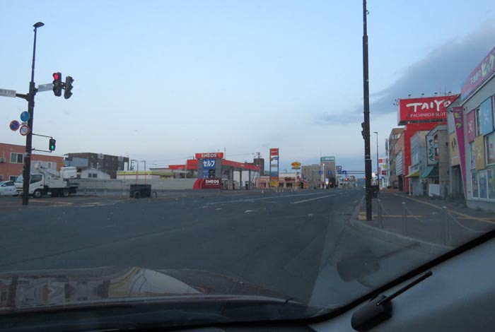 午前4時10分、4条通りの国道39号交差点を右折で緑園通り方向