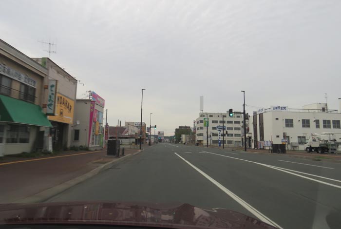 末広町の南岸通り、西4号線バス停前から野付牛自動車学校方向