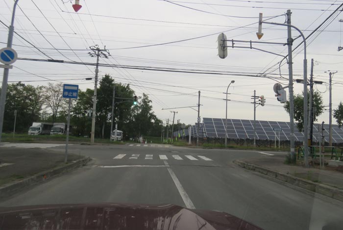 南岸通り、野付牛自動車学校前、前方はとん田通りの交差点